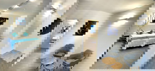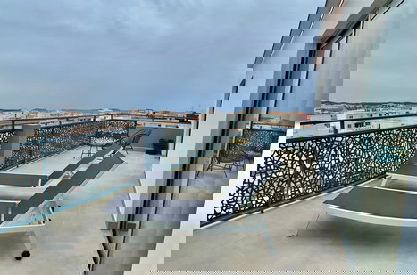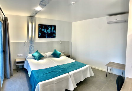Terrace of 27m2 with sunbeds and sea view. Soundproofed room with electric lock located on the upper floor with 2 single Beds or 1 big bed.